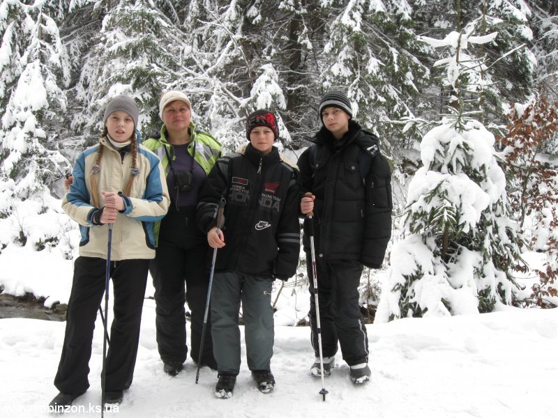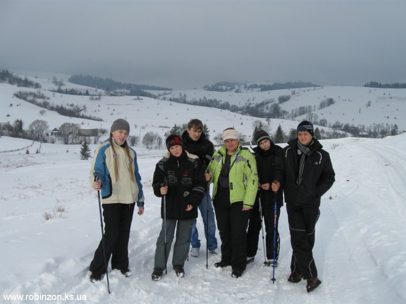 Путешествие турклуба «Робинзон» с детьми в Закарпатскую область, Межгорский район, детская альпинистская база «Под Великим Верхом» детского альпинистского движения Украины село Подобовец. Катание на лыжах и сноуборде на горе Гемба и горе В.Верх.